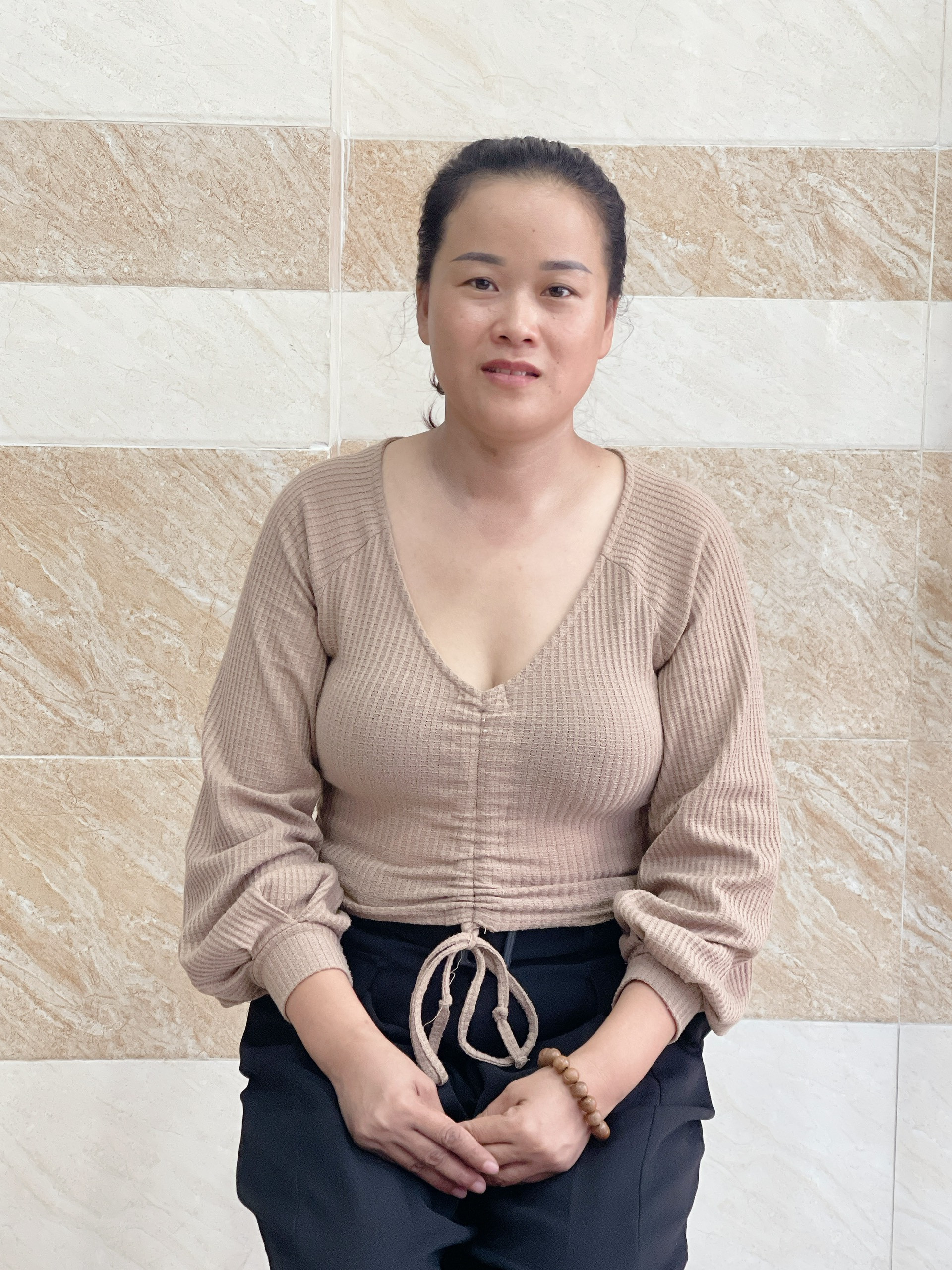 Chị Quảng Thị Quang Vinh _Năm sinh: 1992_Quê quán: Ninh Thuận. Về gia đình: Chồng làm ở Bình Dương, con ở quê với bà, chị đi làm không vướng bận