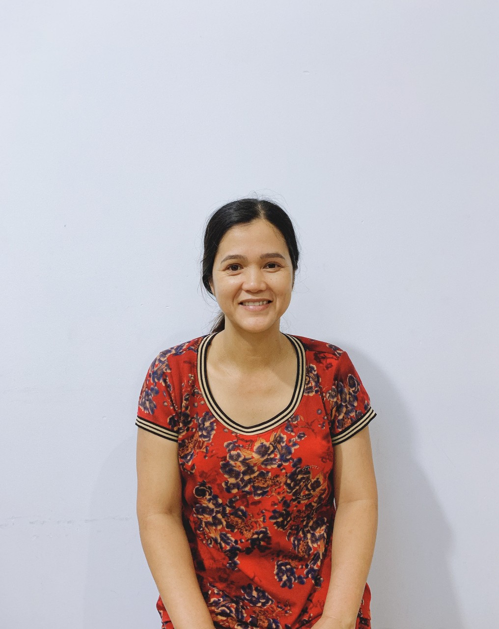 chồng Chị ở làm rẫy,1 con lớn đã đi làm, chị phụ chăm 2 người con đang đi học, chị đi làm không vướng bận.
