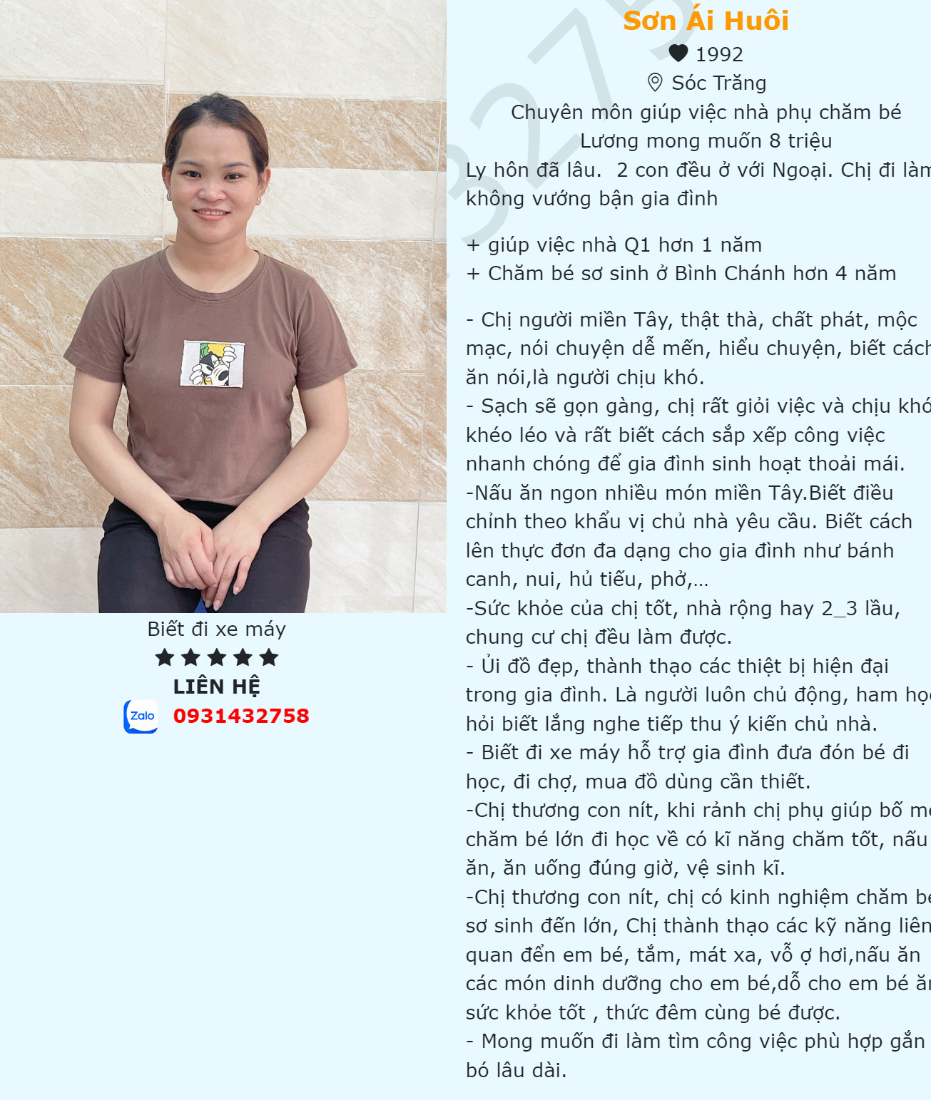 Em tìm việc cho chị Huôi Bảo Mẫu Liên hệ SĐT: