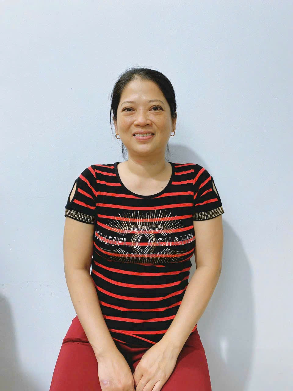 Chị Khum sinh 1983 quê Bến Tre tìm việc ăn ở lại với gia đình.