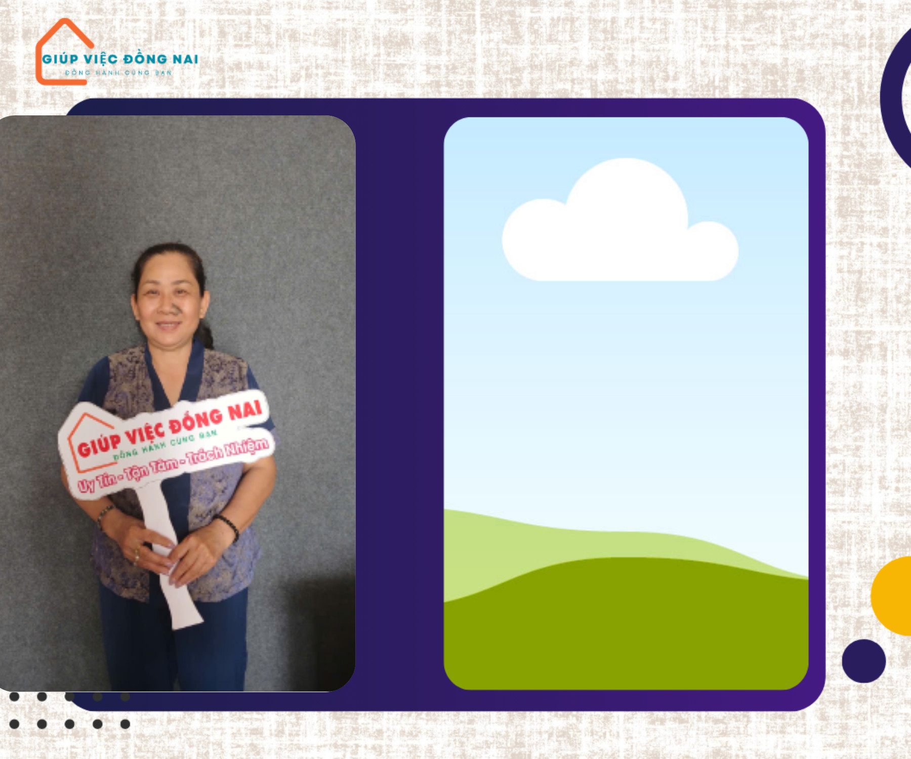 - Chăm bà đi lại yếu, thay bỉm tã, Cho ông bà ăn, vệ sinh, tối dậy thay bỉm vệ sinh, dắt ông bà đi tiểu tiện. Cô biết cách dỗ dành ông bà, nói chuyện tâm sự với ông bà, lấy thuốc ông bà uống, vệ sinh phòng ông bà sạch sẽ. Biết cách giữ gìn và chăm nom ông bà, chăm sóc tận tình tận tâm