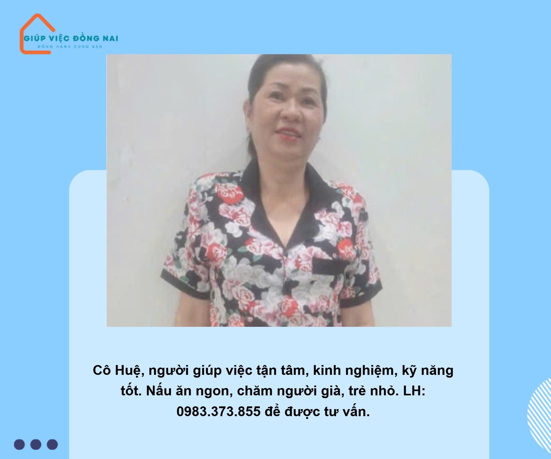 + Chị yêu thương người lớn tuổi, có thể xoa bóp, dìu đỡ ông bà đi lại
