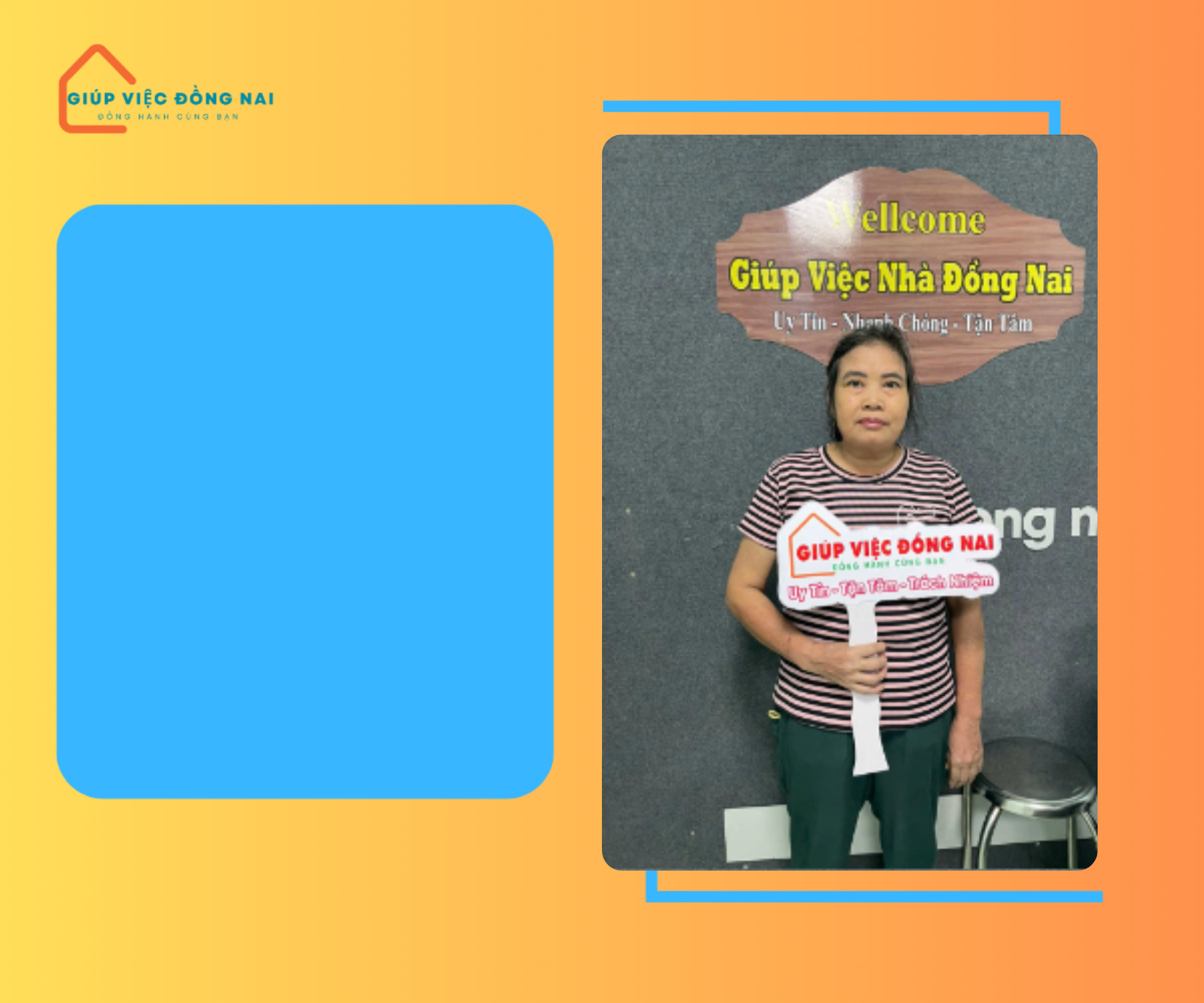Chị vui vẻ, là người nhiệt tình dễ mến, chị đi làm phụ kinh tế gia đình, rất chịu khó, mong muốn tìm được 1 việc làm ổn định lâu dài.