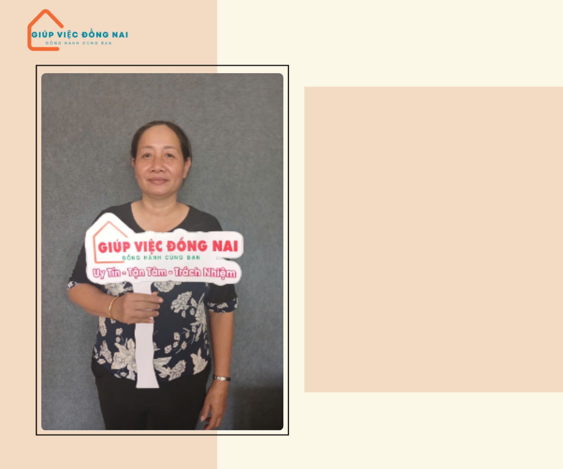 + Tính tình chị rất hiền lành, chịu khó, công việc lúc nào cũng ngăn nắp, gọn gàng, gia đình cứ an tâm giao cho cô.